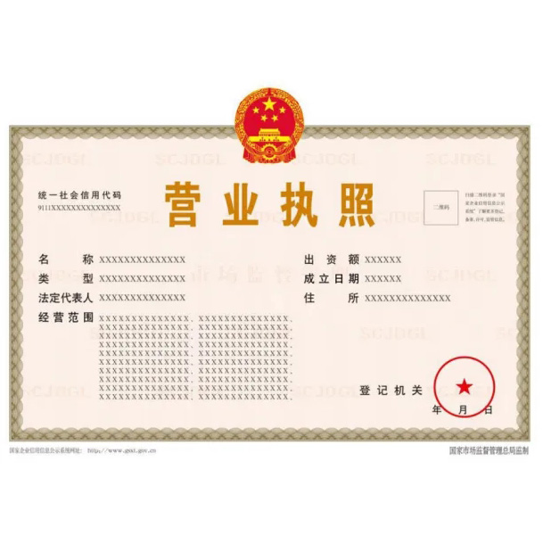 公司注册完成后您将领取到全新的”五证合一”营业执照